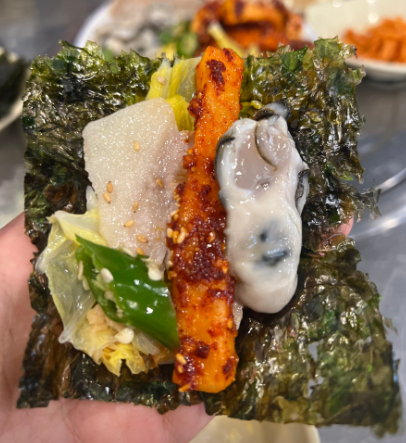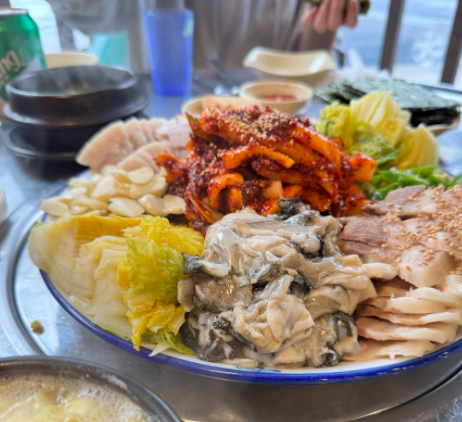 - 굴보쌈: 신선한 굴과 부드러운 보쌈의 조합이 일품입니다. 김에 싸먹는 방식이 독특하고, 무생채 무침이 정말 킬링 포인트입니다.
