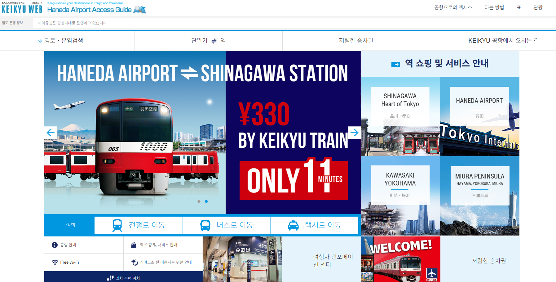 - 게이큐선 (京急線): 가장 저렴하고 빠른 방법입니다. 시나가와역까지 단 11분 만에 도착하며, 이곳에서 JR 야마노테선으로 환승하면 신주쿠, 시부야 등 어디든 쉽게 갈 수 있습니다.
