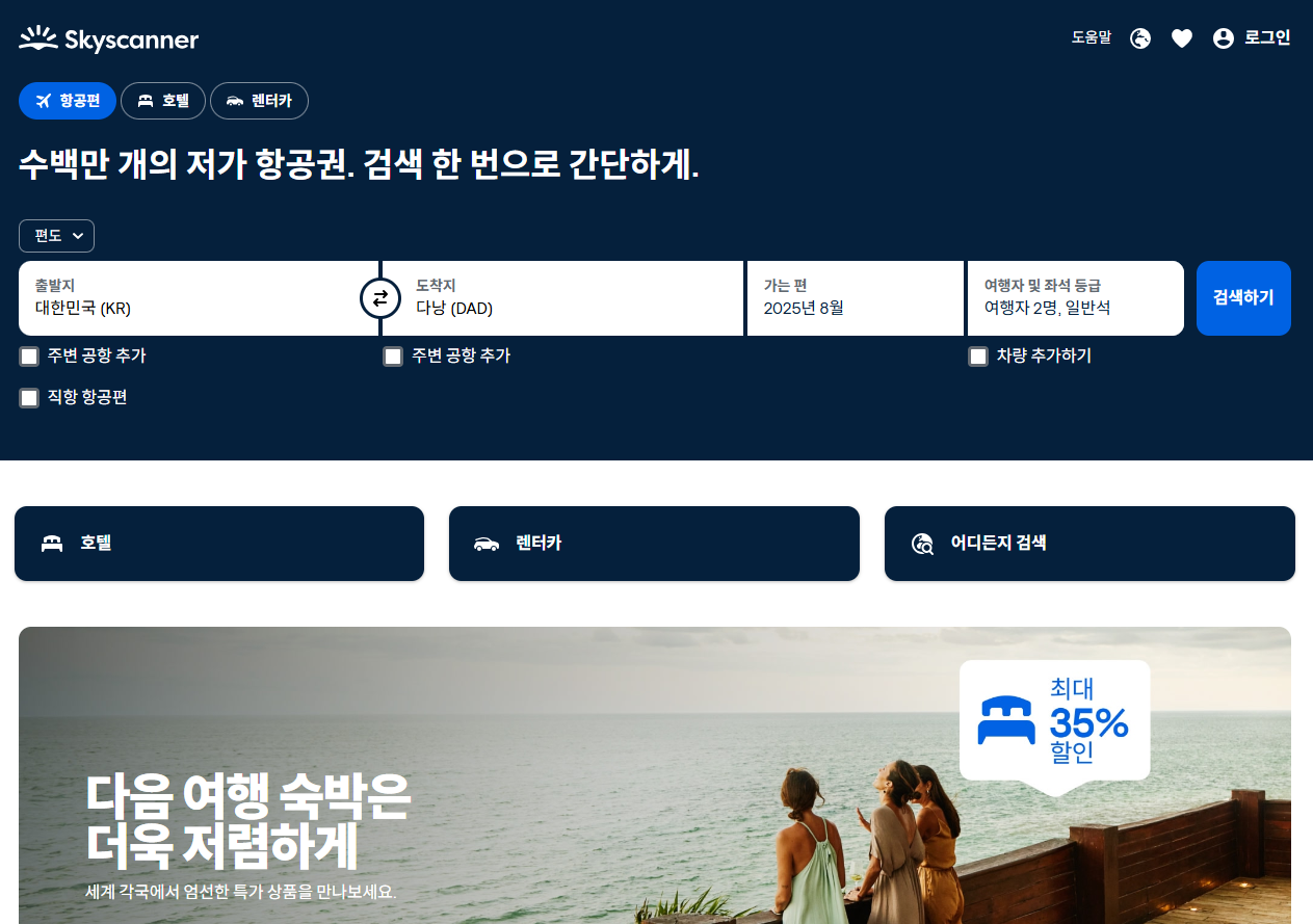 - 다낭 항공권 싸게 사려면? 👉 '손품' 대신 스카이스캐너, 네이버 항공권 등의 '특가 알림'을 설정하세요.