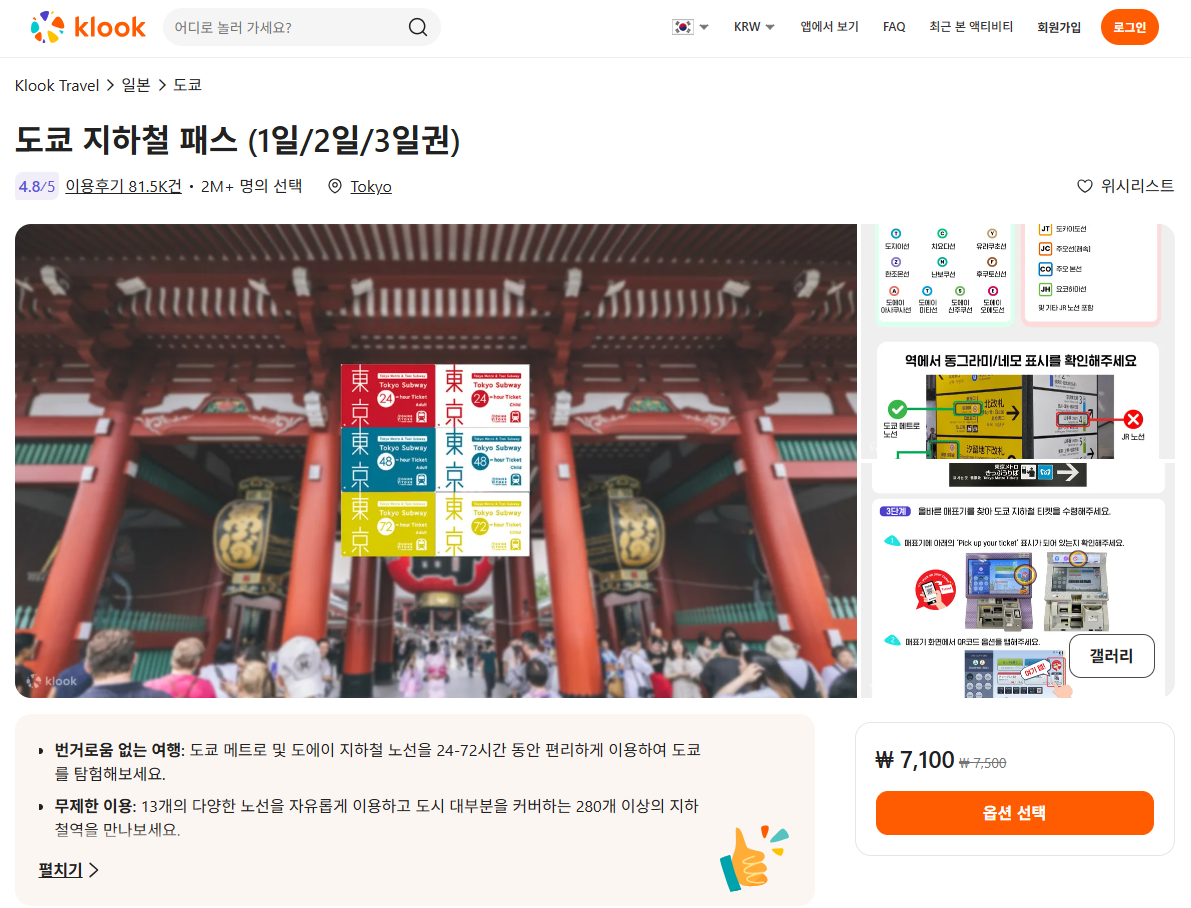 - 구매는 무조건 한국에서 미리!: 클룩(Klook), 케이케이데이(KKday) 같은 온라인 여행 플랫폼에서 구매하면 현지보다 저렴한 경우가 많습니다. 각종 할인 쿠폰까지 적용하면 그야말로 '꿀딜'이죠. 구매 후 받은 QR코드를 현지 지하철역 창구나 키오스크에서 실물 티켓으로 교환하면 됩니다.