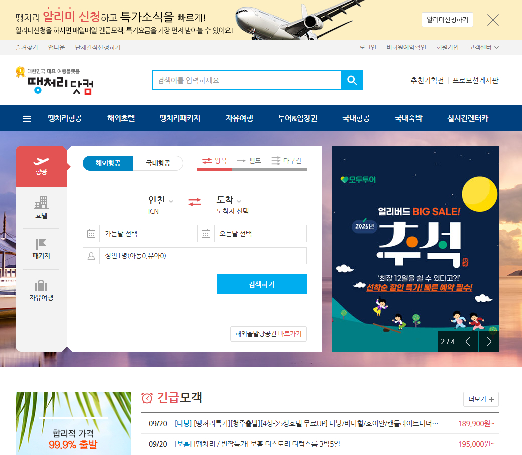 이 비법들만 잘 활용해도 땡처리 여행의 절반은 성공한 셈입니다.
