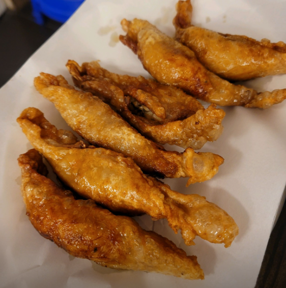 - 닭똥집 튀김과 양념소스, 겨자소스 기본 제공