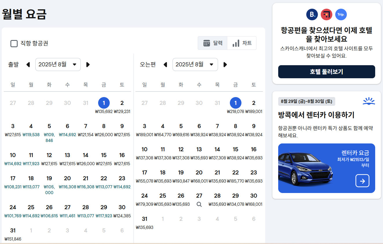 2. 가격 트렌드 그래프 적극 활용: 날짜별 ‘저가표’ 달력 보며 유동적으로 체크