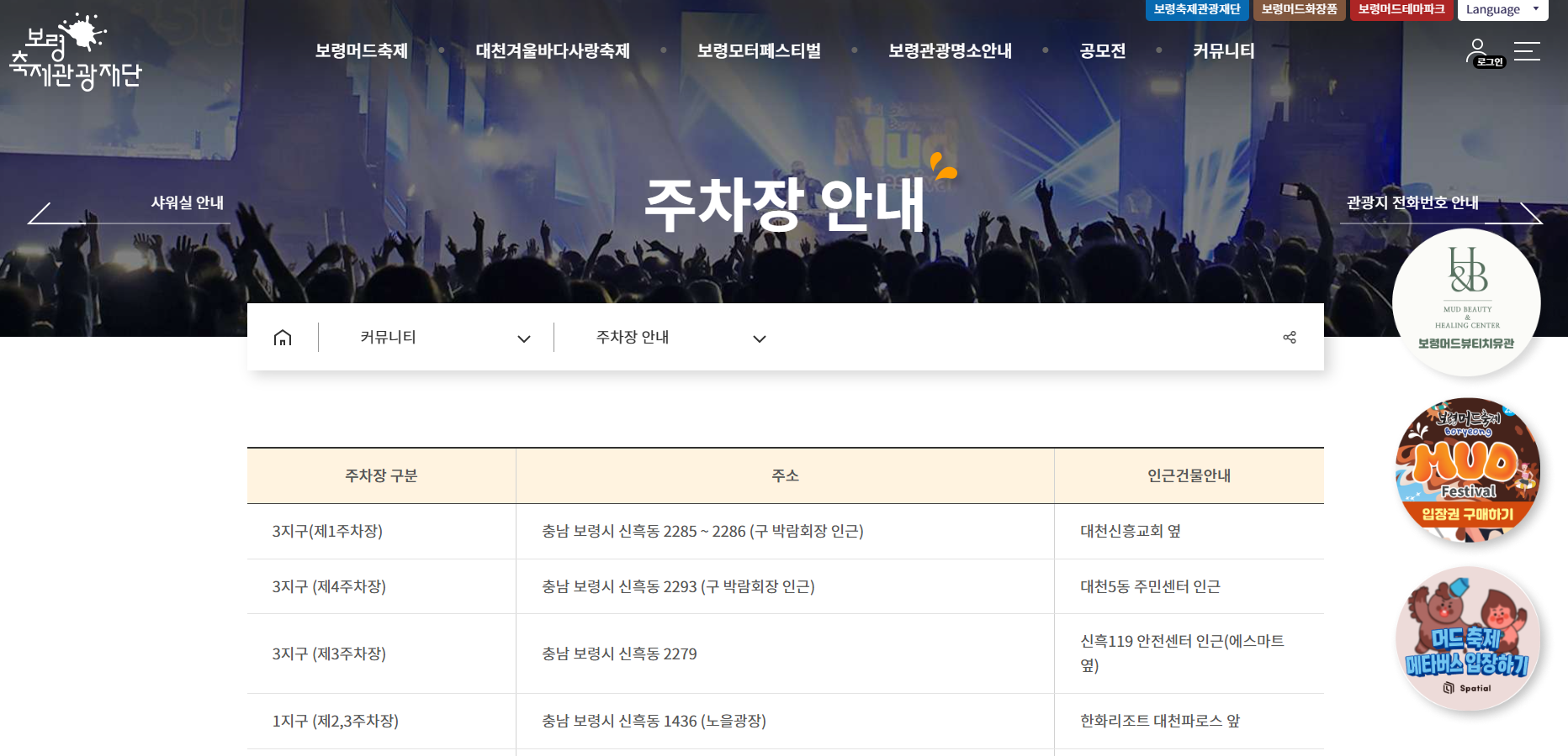 | 공영주차장 | 대천항수산시장 | 유료, 축제장과 거리 있음 |