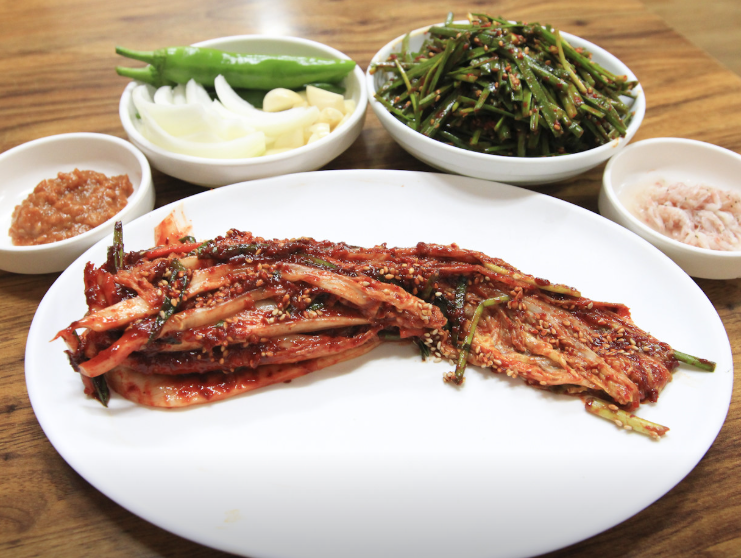 테이블에는 양념장과 후추, 쌈장, 새우젓이 준비되어 있어 자신의 입맛에 맞게 간을 조절할 수 있습니다. 김치는 직원이 가위로 바로 잘라주시는데, 이 또한 본전돼지국밥만의 특별한 서비스입니다. 🥢