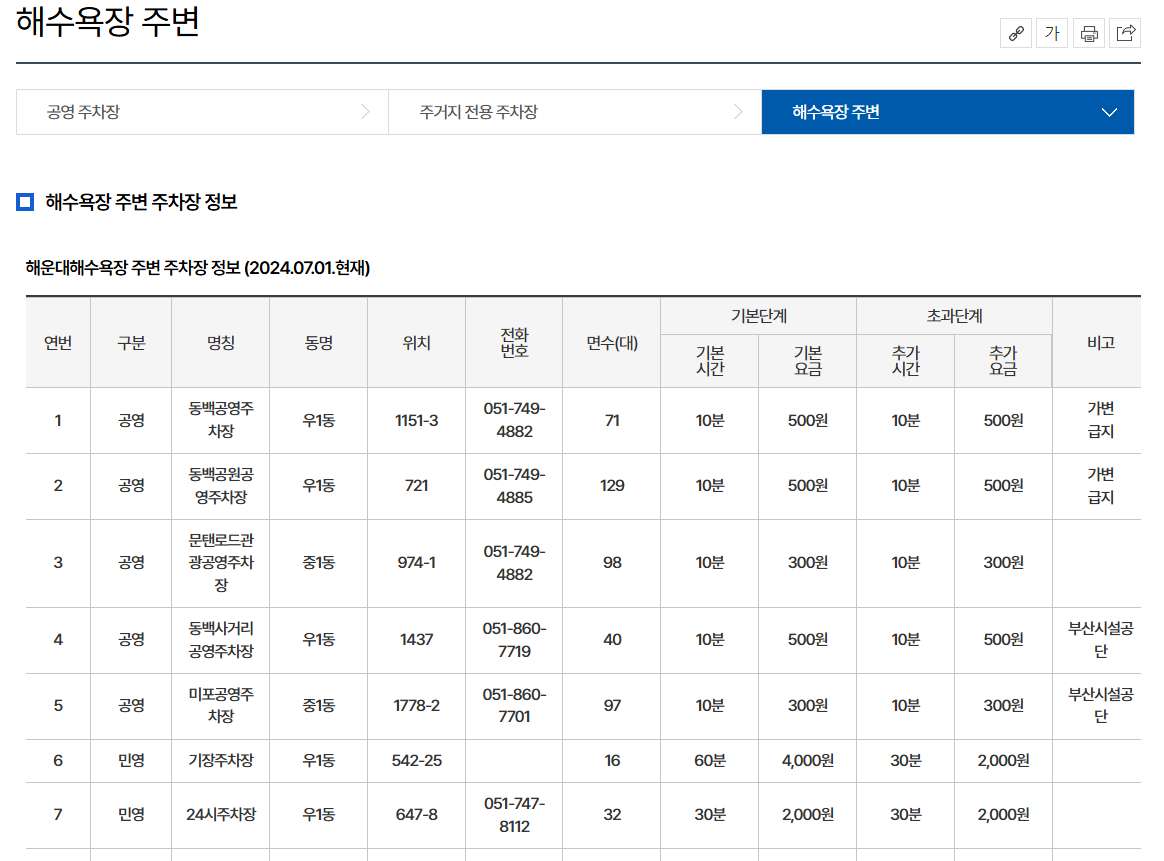 | 해운대광장 공영주차장 | 700원 | 24시간 운영, 역시나 경쟁 치열 |