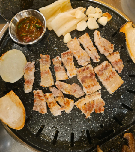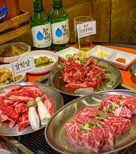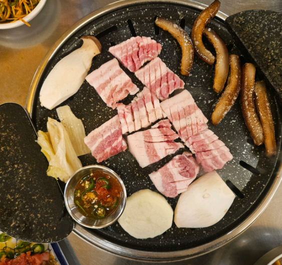 부라더식당의 특별한 점은 다양하고 특색 있는 고기 메뉴에 있습니다. 훈제오리빛의 통삼겹살부터 꽃삼겹로스, 부라더갈비, 두툼껍데기, 항정살껍데기 등 다양한 고기를 맛볼 수 있어요. 특히 꽃모양처럼 생긴 꽃삼겹로스는 비주얼부터 눈길을 사로잡으며, 고기도 부드럽고 잡내 없이 깔끔한 맛을 자랑합니다.