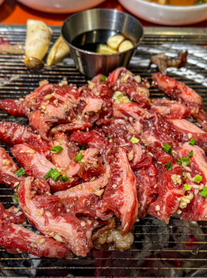 우대꽃갈비는 비주얼부터 신기하게 생겼는데, 일반적인 우대갈비를 얇게 썰어낸 버전으로 전국 최초로 화로선생에서 만들어낸 메뉴라고 합니다. 숯불에 구워먹는 소고기라 불향 가득한 맛이 입혀져 더욱 풍미가 깊습니다. 특히 우대갈비와 목이버섯을 함께 구워먹으면 맛이 더욱 풍성해집니다.