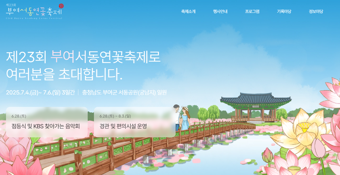 - 축제 필수 코스는? 👉 낮에는 연꽃, 밤에는 화려한 야간 경관과 '궁남지 판타지' 공연을 놓치지 마세요.