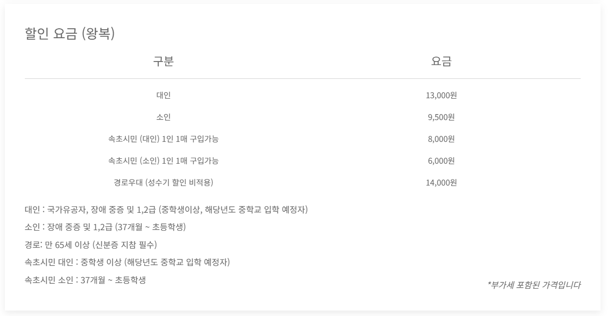 할인 혜택은 장애인(1, 2급) 본인과 속초시민에게 적용됩니다. 해당하는 분들은 반드시 신분증이나 복지카드 등 증빙서류를 지참해야 할인받을 수 있으니 잊지 말고 챙겨가세요!