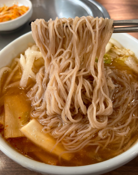 - 메밀 함량이 높아 거칠지만 탄력 있는 면발