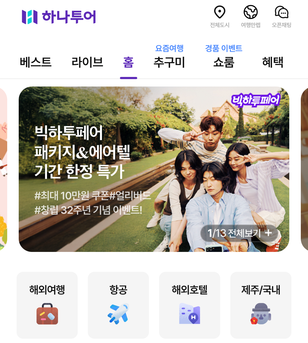 요약: 하나투어 공식 홈페이지의 '땡처리 항공' 또는 '출발임박특가' 코너를 공략하는 것이 가장 효율적입니다.