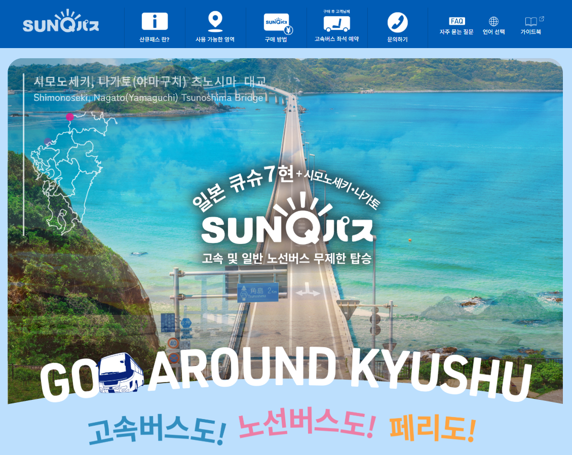 - 고속버스 (가성비 최고): 하카타 버스터미널이나 후쿠오카 공항에서 출발하는 고속버스는 환승 없이 한 번에 갈 수 있어 가장 편리하고 저렴합니다. 북큐슈 지역 버스를 무제한 탑승할 수 있는 '산큐(SUNQ)패스'를 이용하면 더욱 경제적입니다.