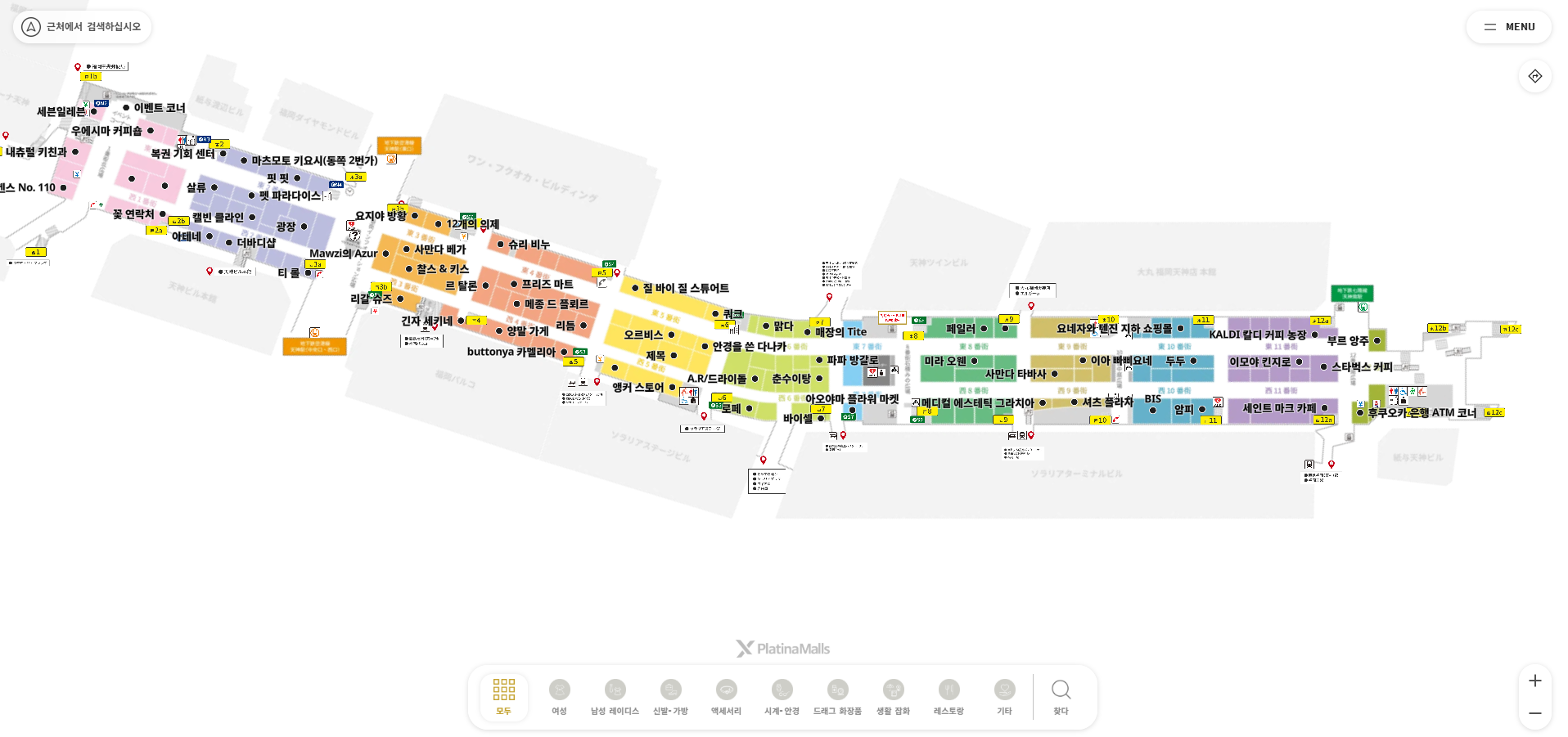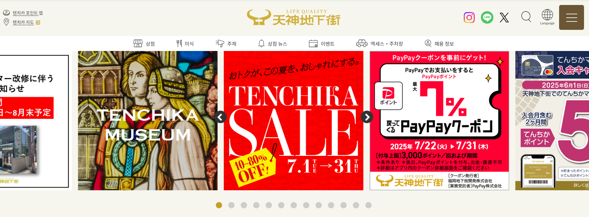 총 길이 약 600m에 달하는 이 지하 쇼핑몰은 지하철 텐진역, 텐진미나미역과 직접 연결되어 교통이 매우 편리합니다. 뿐만 아니라 파르코, 미츠코시, 다이마루, 솔라리아 플라자 등 텐진의 주요 백화점과 쇼핑몰이 모두 지하로 연결되어 있어, 궂은 날씨에도 쾌적하게 원스톱 쇼핑을 즐길 수 있죠.