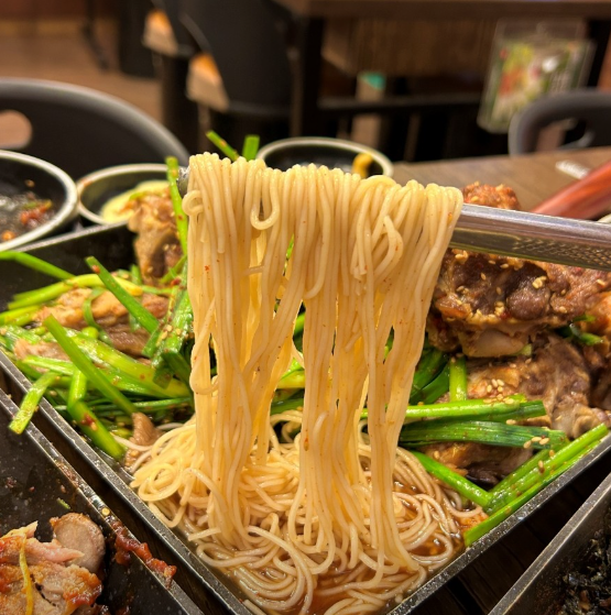 • 왕뼈칼국수: 특이하게도 쫄면과 칼국수면 중간의 쫄깃한 식감을 가진 면이 특징입니다.