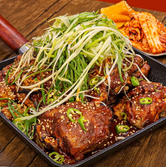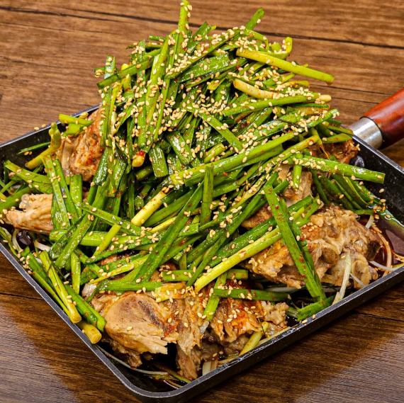 • 직화뼈구이: 매콤달콤 특제소스와 파채의 조합이 환상적입니다. 위생장갑을 끼고 등뼈 살고기를 발라 파채를 올려 먹으면 그 맛이 더욱 배가됩니다.
